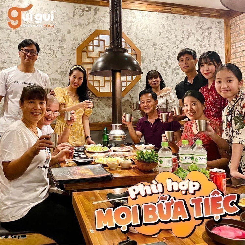 Hệ thống nhà hàng Hàn Quốc Guigui BBQ với hệ thống bếp nướng được nhập khẩu 100% từ Hàn Quốc, không khói mà vẫn đảm bảo mang đến hương vị quyến rũ đặc trưng của những món nướng. Đồ ăn được đặt trực tiếp trên vỉ nướng, nướng cho đến khi đượm vàng, cháy xém cạnh rồi dùng với nước sốt được pha chế đặc biệt phù hợp với khẩu vị của người Việt Nam. Ăn một miếng thịt nướng, thưởng thức một chút rau củ quả nướng kèm bên cạnh, bạn sẽ có cảm giác thức ăn đang hòa quyện trong miệng, dậy lên mùi thơm hấp dẫn.